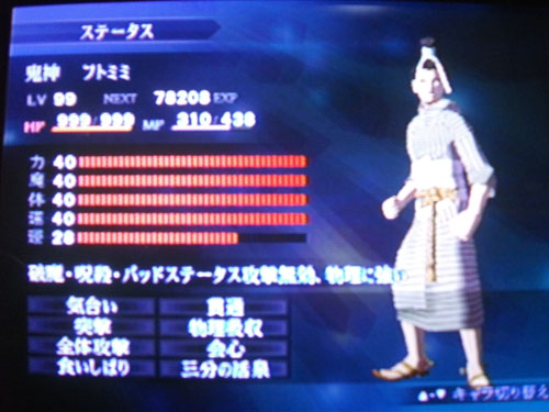 たしか他の最終メンツはメタトロン、ベルゼブブとか1マッカでゲットしたダンテ(2軍)とかだったはず。自分、基本的にRPGは強さを求めるガチメンツばっかなんで、面白くもなんともなくてすいません。